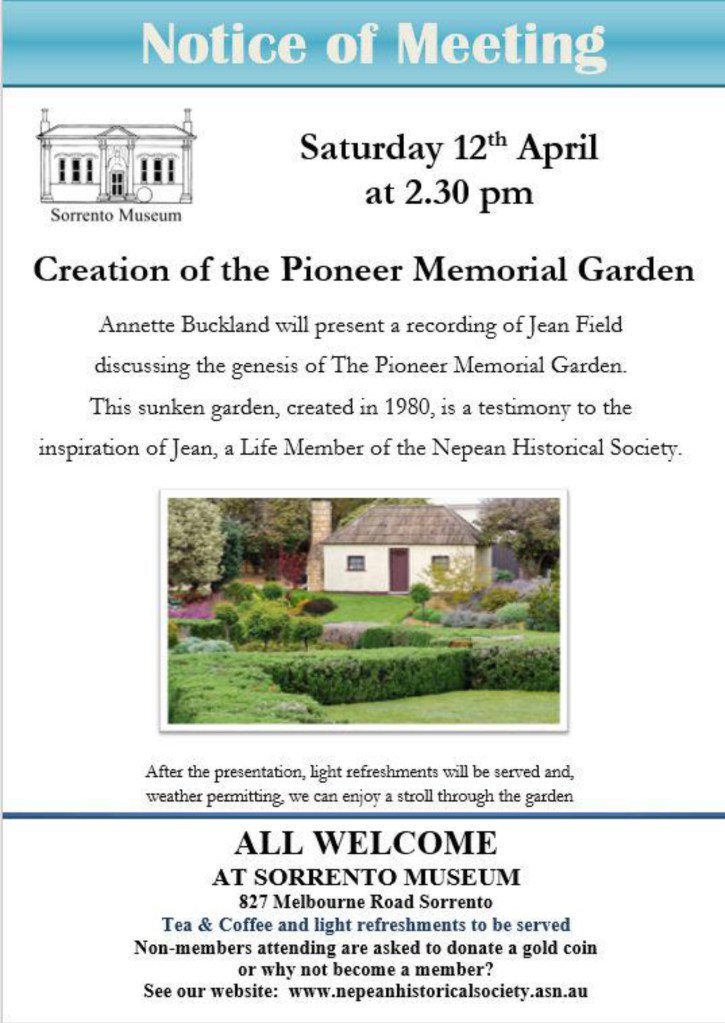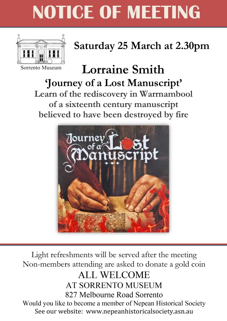Sunday 10th Dec at 2:00pm at Sorrento Museum
