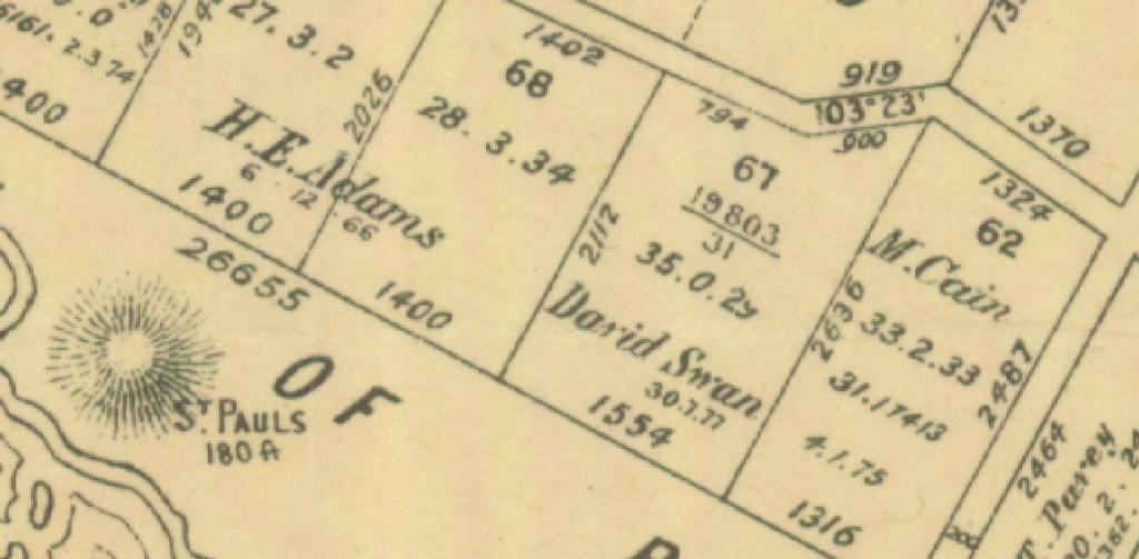 The only block that was ‘originally issued to David Swan‘ was Crown Allotment 67 (35 acres & 29 perches) which he bought for £36 in July 1877. The allotment was mortgaged to Lime Merchant William Allison Blair. It was transferred to Blair in 1888.