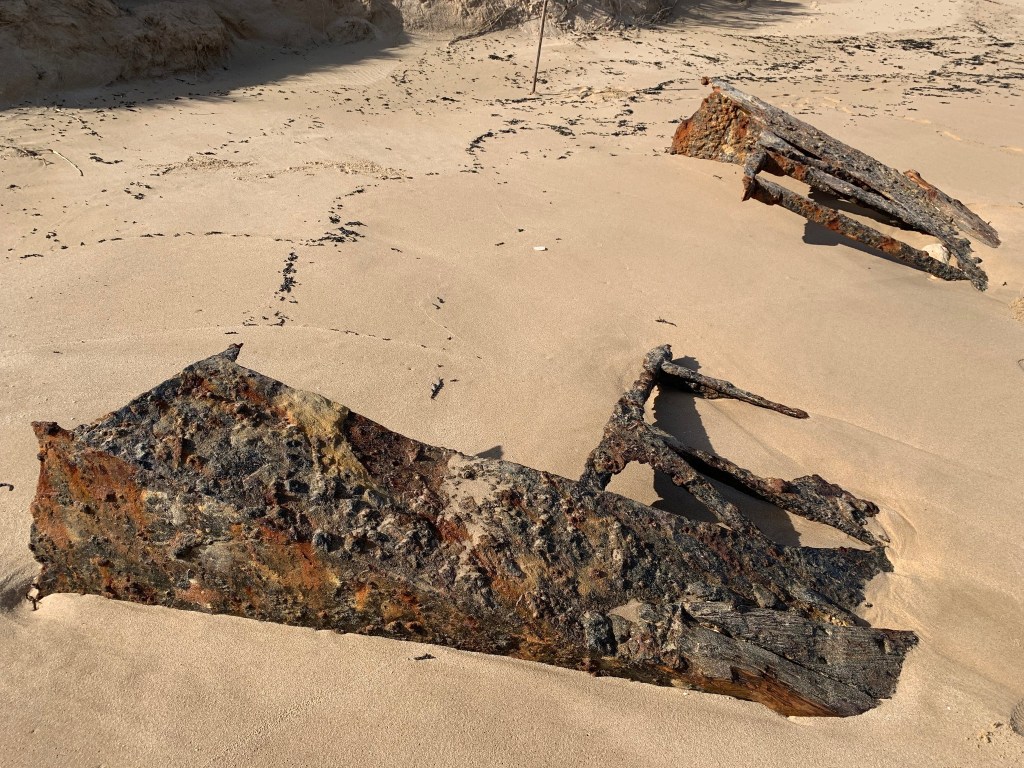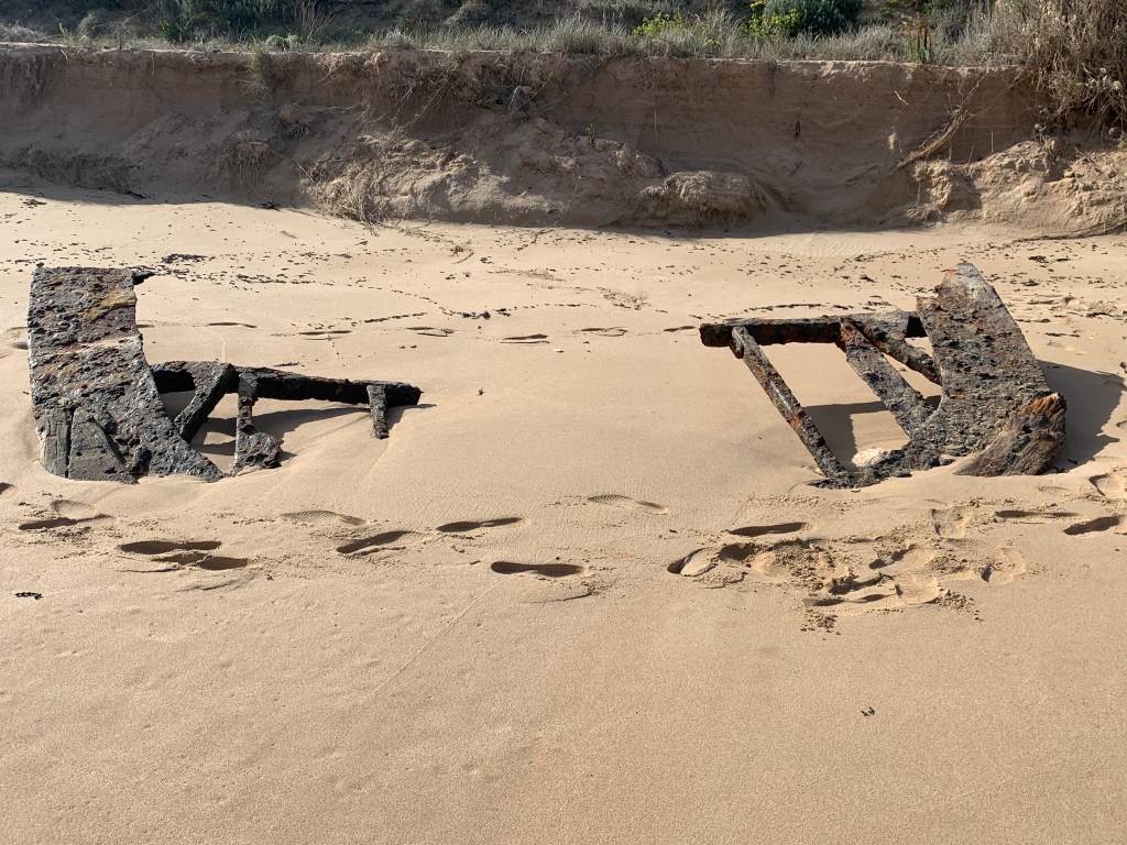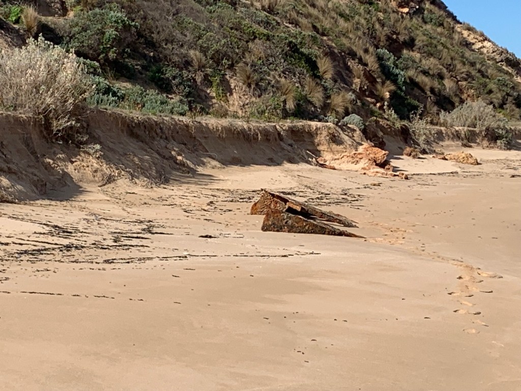 The remains of the wreck are occasionally visible when the weather exposes it near London Bridge at Portsea.